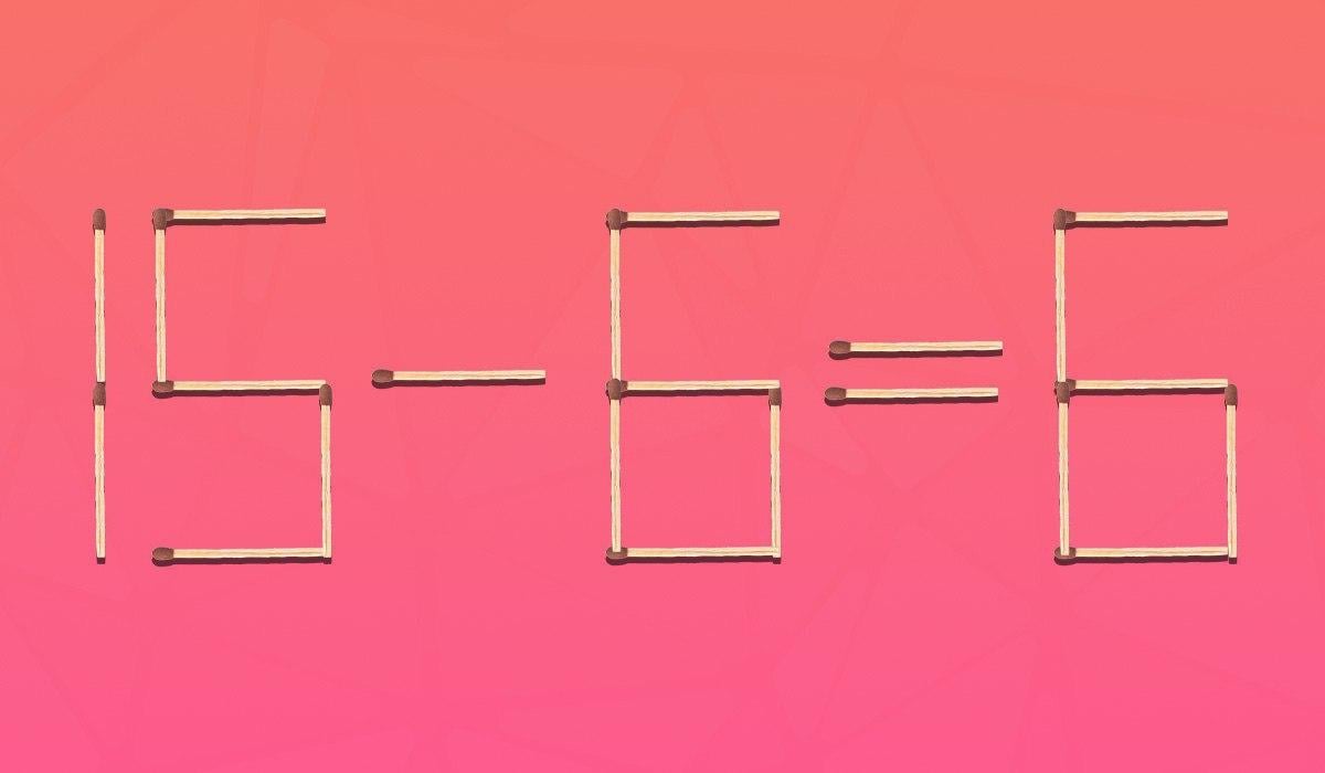 Nižšie teda uvidíte rovnosť 15-6=6 zloženú z 22 zápaliek. Je zrejmé, že z matematického hľadiska je nesprávna. Vašou úlohou je opraviť ju.