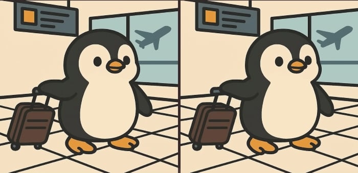 Tak čo, ste pripravení na ďalšiu výzvu? Pozrite sa pozorne na dva obrázky roztomilého tučniaka, ktorý nesie batožinu na letisku. Na prvý pohľad možno vyzerajú rovnako, ale skrývajú sa na nich tri malé rozdiely. Myslíte si, že ich všetky nájdete za 61 sekúnd? Vyskúšajte to a otestujte svoju ostrosť zraku!